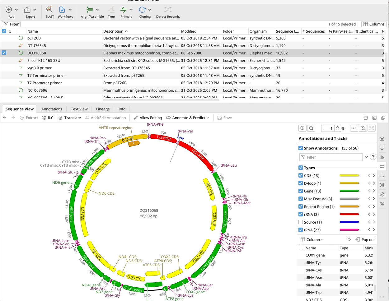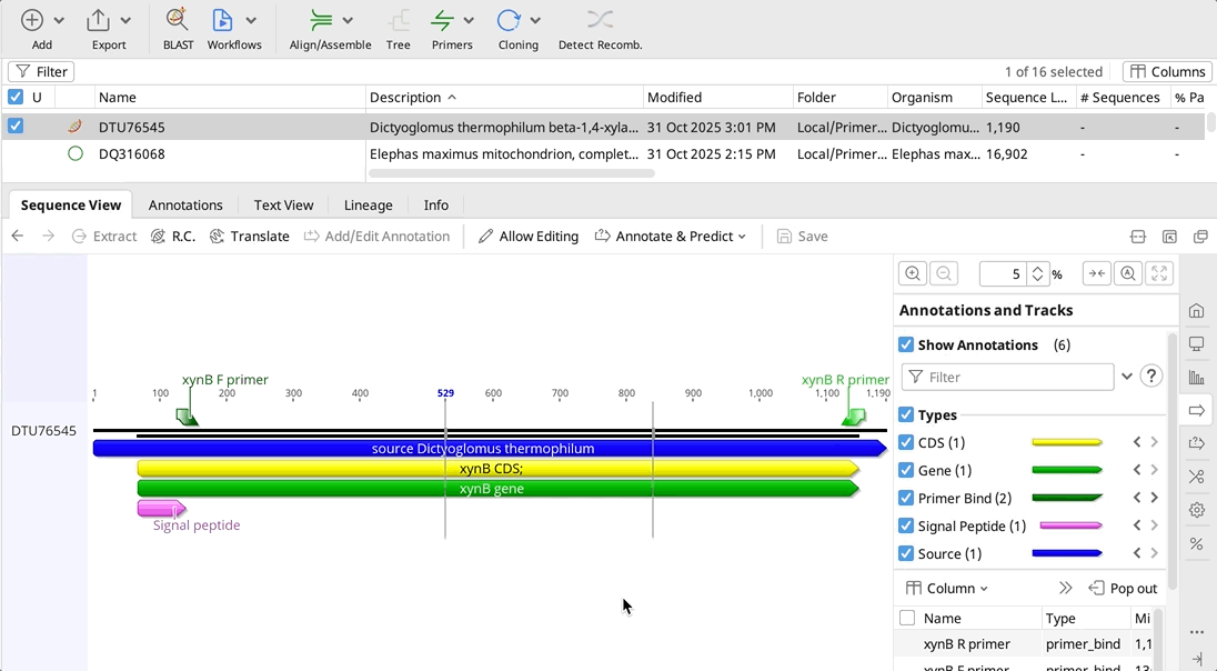 - Primers appear as annotations on your sequence