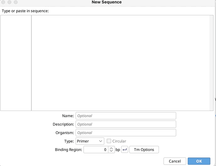 - Enter primer sequence and set Type to "Primer"